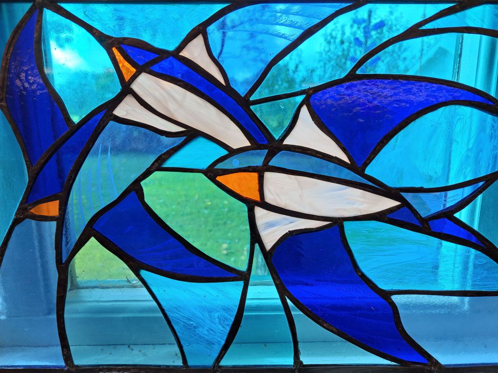 I teach the art of stained glass making from my light filled studio overlooking the fields.